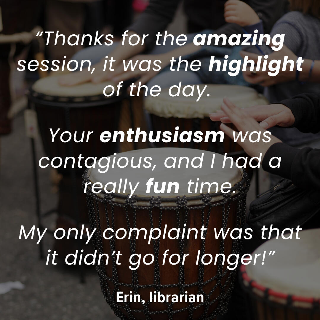 Bring your staff together with a powerful, hands-on rhythm experience — perfect for professional development and team connection.