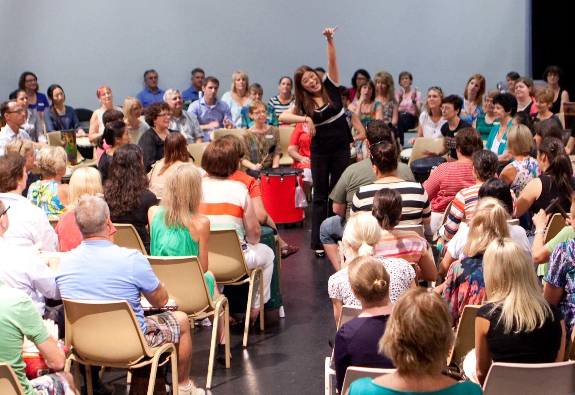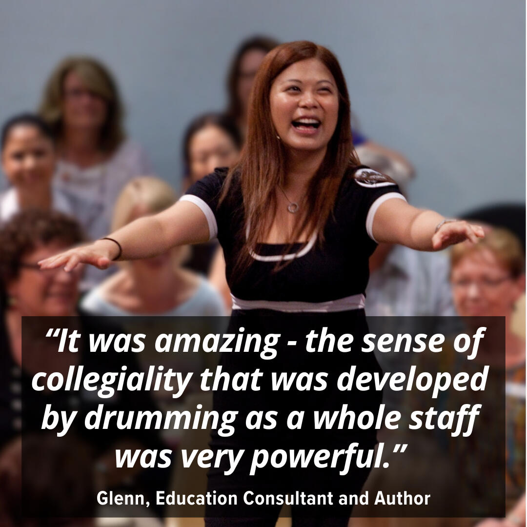 "The beginning of a new school year is an opportune time to inspire staff to work as a cohesive professional group... For staff to become the learners in an atmosphere of fun and collaboration is a powerful way to re-energise staff morale.In a short 30-minute time frame, Tina had 180 staff totally engaged and made links between the message of the prior presenter and the experience of drumming.The success of this activity was no doubt due to Tina’s thorough preparation and vibrant, professional delivery. A great way to start the new year."